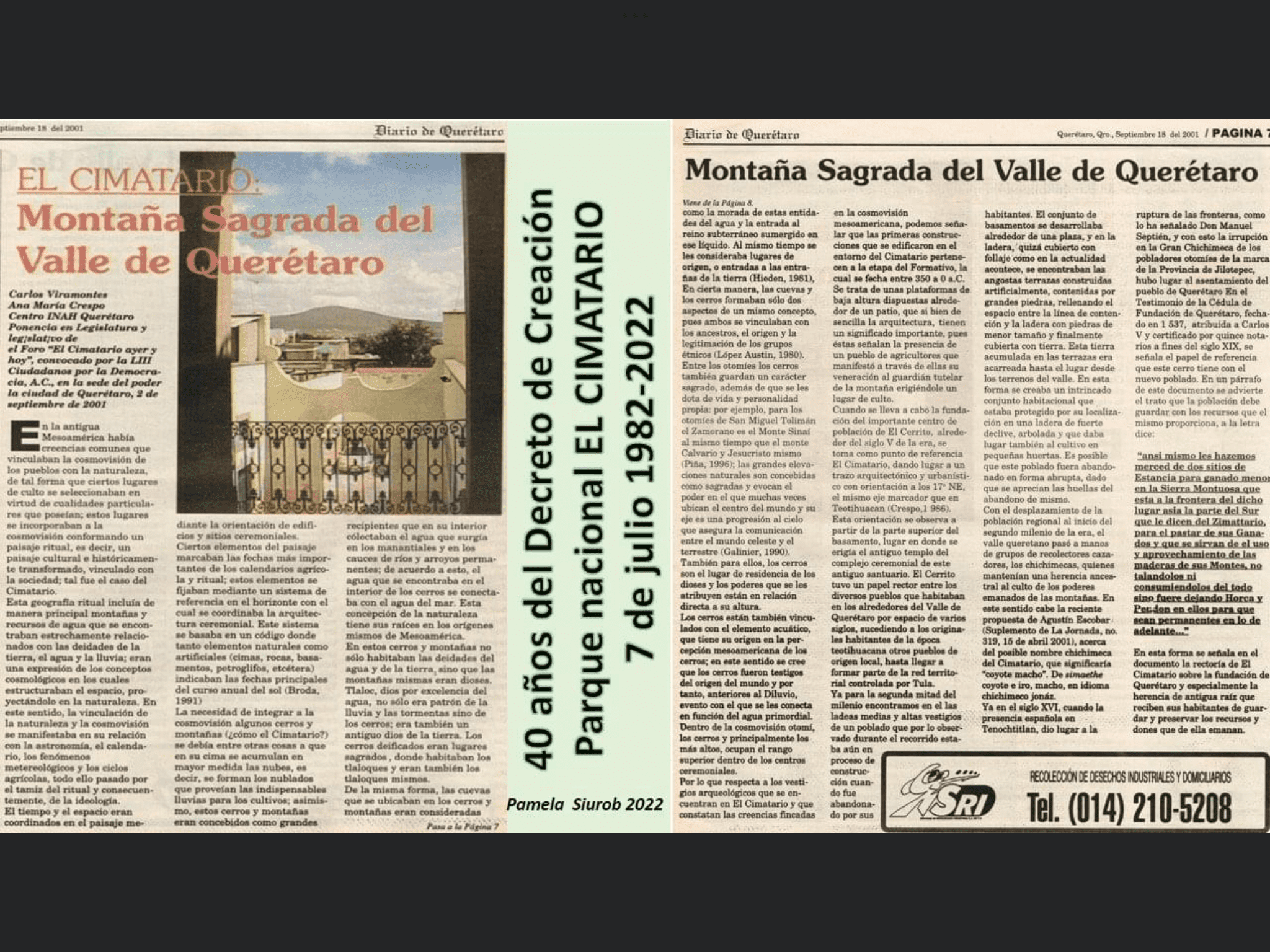 Que independientemente del aprovechamiento que en beneficio social se le dará al área donde se encuentra el cerro conocido como “El Cimatario”, es conveniente destacar su relevancia histórica, ya que en ese lugar se libró la batalla conocida como de “los 30 contra los 400”, donde el grupo minoritario perteneciente al Ejército Trigarante, obtuvo el triunfo sobre las tropas mayoritarias del Ejército Virreinal, destacándose como un hecho significativo para la Independencia de nuestro país, acontecimiento que aunado a las razones anteriores, justifica el establecimiento de este Parque Nacional.