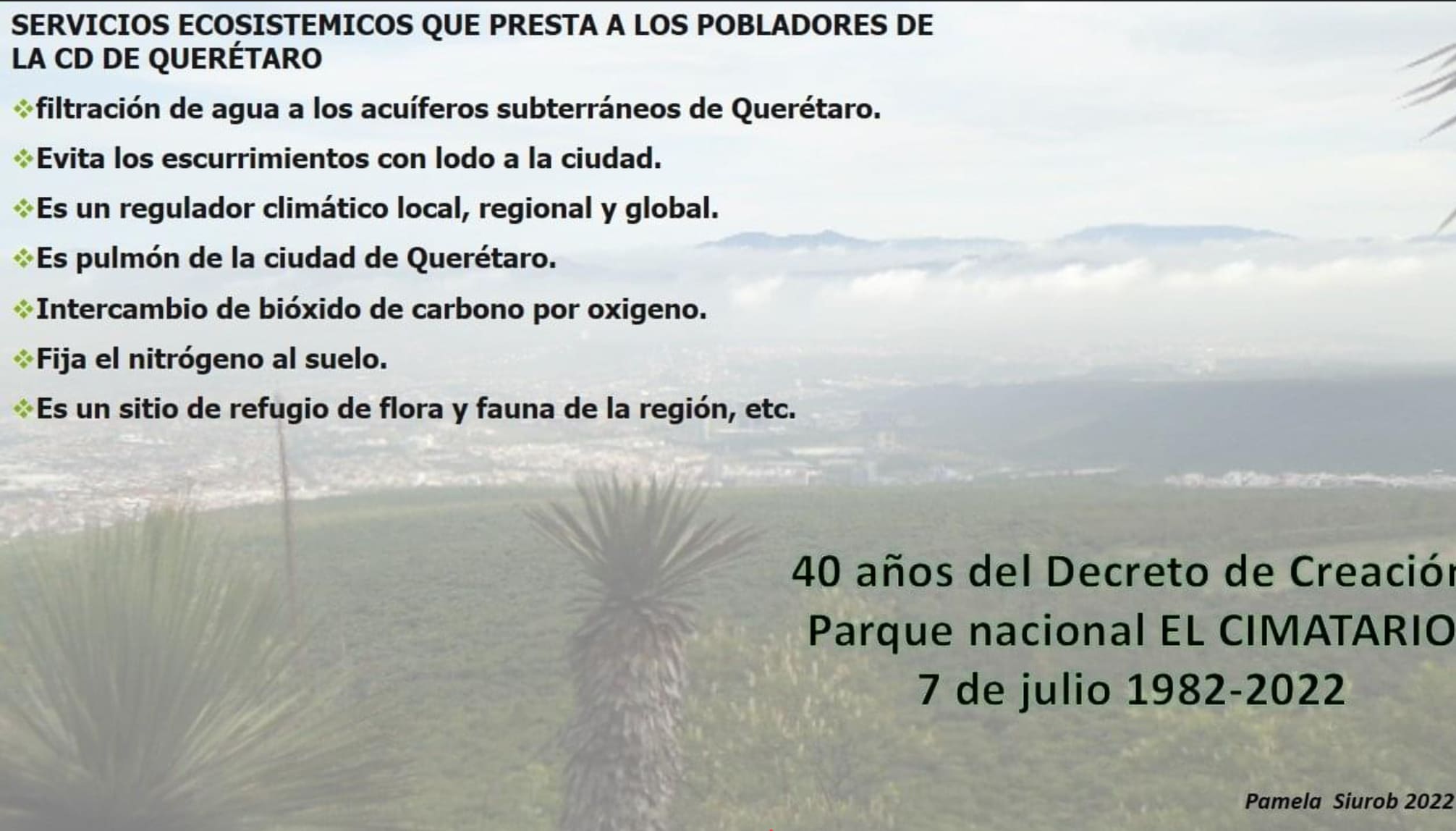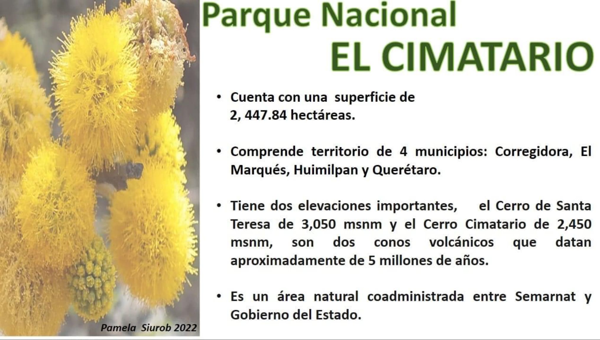 En las inmediaciones de la ciudad de Querétaro, existe un paisaje geomorfológico integrado primordialmente por un conjunto de cerros entre los que destaca “El Cimatario”, ubicado al sur de ese centro urbano, siendo la altura más prominente de esa región, que se convirtió desde tiempo inmemorial y debido a su belleza natural en uno de los paseos predilectos de los lugareños, requisitos considerados como favorables para el establecimiento de un Parque Nacional, que además de mejorar el aspecto estético, coadyuvará a la conservación del medio ambiente, mejorando el hábitat de los asentamientos humanos del lugar, contribuyendo a su recreación.